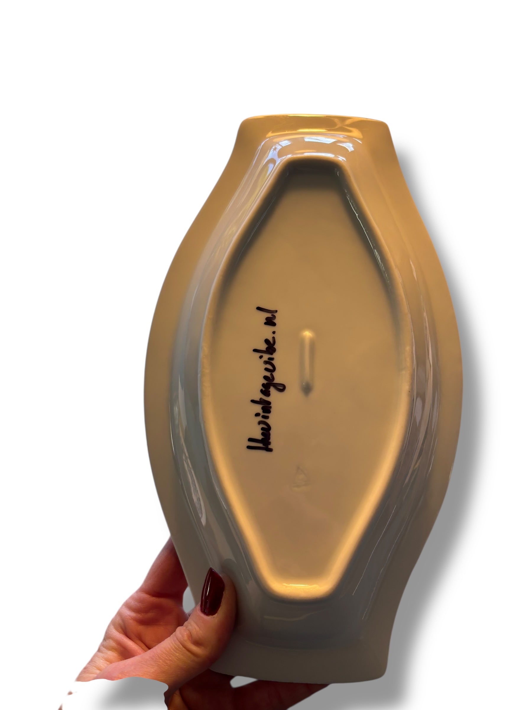 Dit decoratieve bord is echt vintage en kan subtiele gebruikssporen bevatten die passen bij de leeftijd. Deze kleine imperfecties geven juist extra charme en vertellen het verhaal van het verleden.